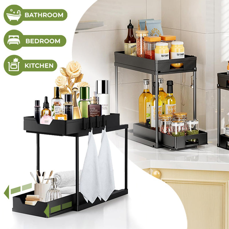 🔥2-poziomowy organizer wysuwany pod umywalkę do łazienki