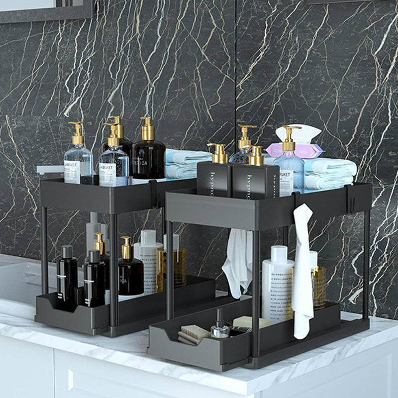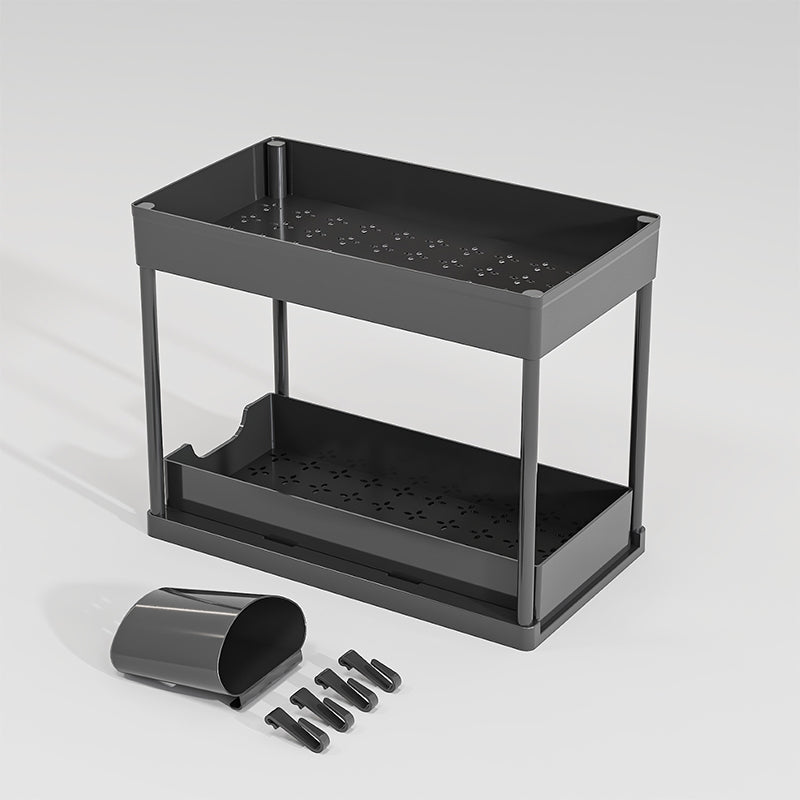 Zestaw zawiera: 1*2-poziomowy wysuwany organizer pod umywalkę do łazienki