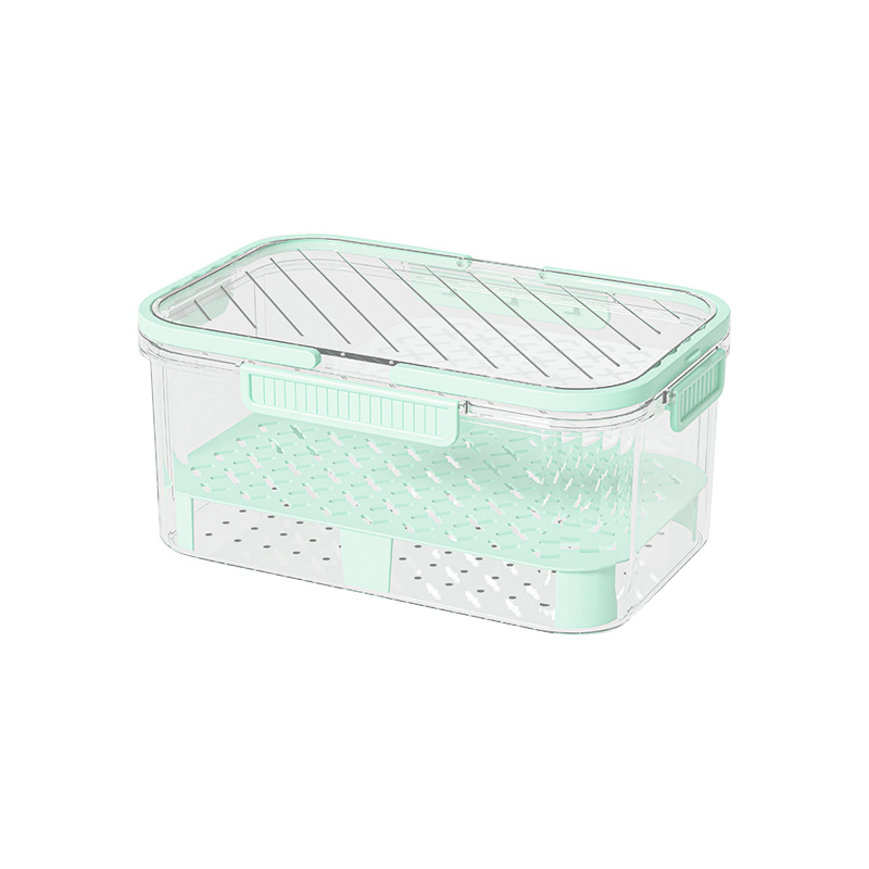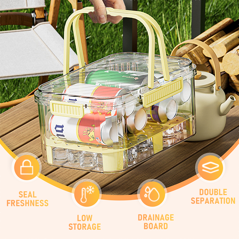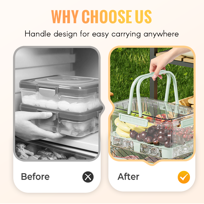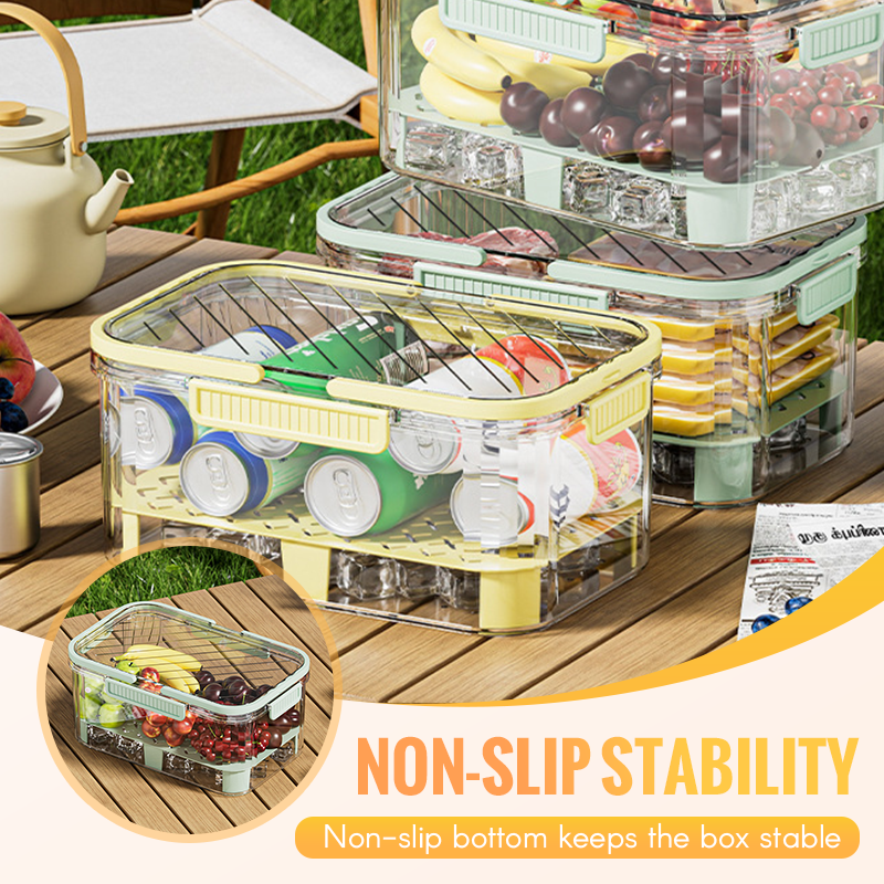 WYGODNA KONSTRUKCJA UŁATWIAJĄCA UŻYTKOWANIE– Dzięki przenośnemu uchwytowi pojemnik ten jest łatwy do przenoszenia. Dwupoziomowa przegroda i tacka ociekowa pozwalają zachować świeżość żywności, a antypoślizgowe dno zapewnia stabilność podczas transportu lub przechowywania, niezależnie od powierzchni.