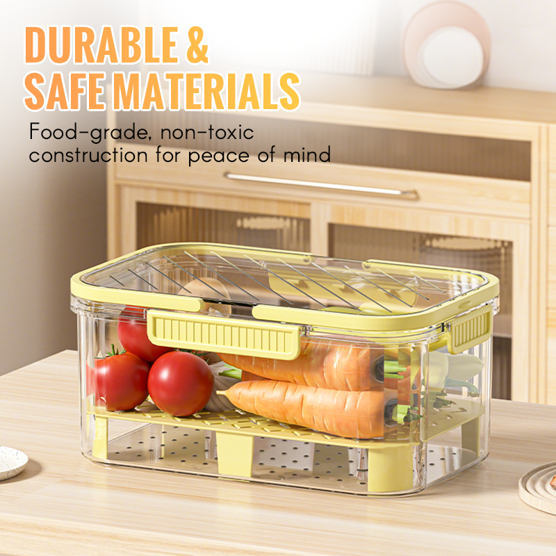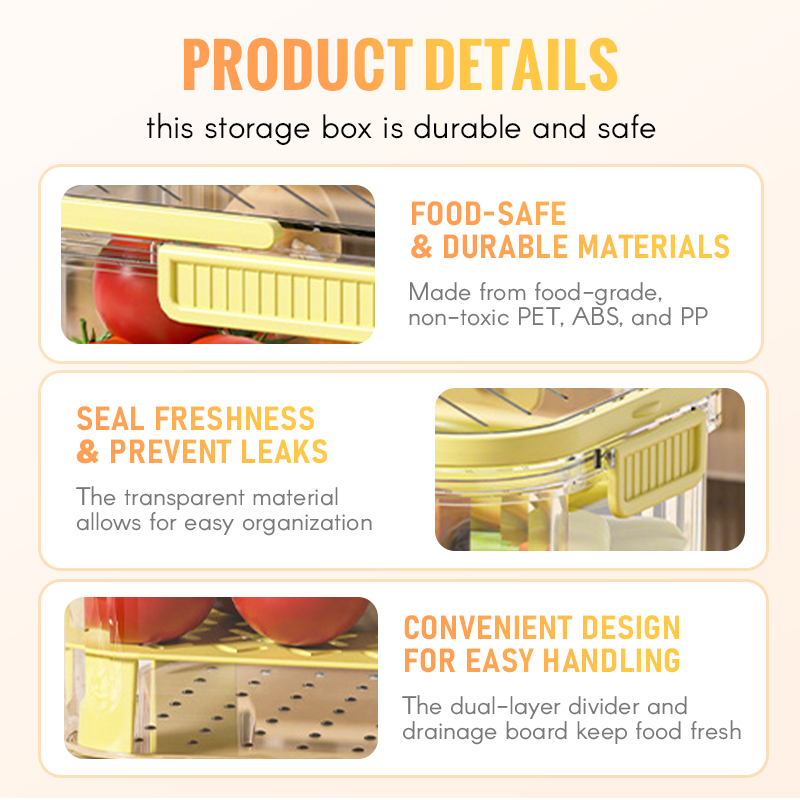 MATERIAŁY BEZPIECZNE DLA ŻYWNOŚCI I TRWAŁE – Pudełko do przechowywania jest wykonane z nietoksycznego PET, ABS i PP dopuszczonych do kontaktu z żywnością, dzięki czemu jest trwałe i bezpieczne dla wszystkich produktów spożywczych. Można je przechowywać w lodówce, zachowując smak i konsystencję żywności nawet w niskich temperaturach.
