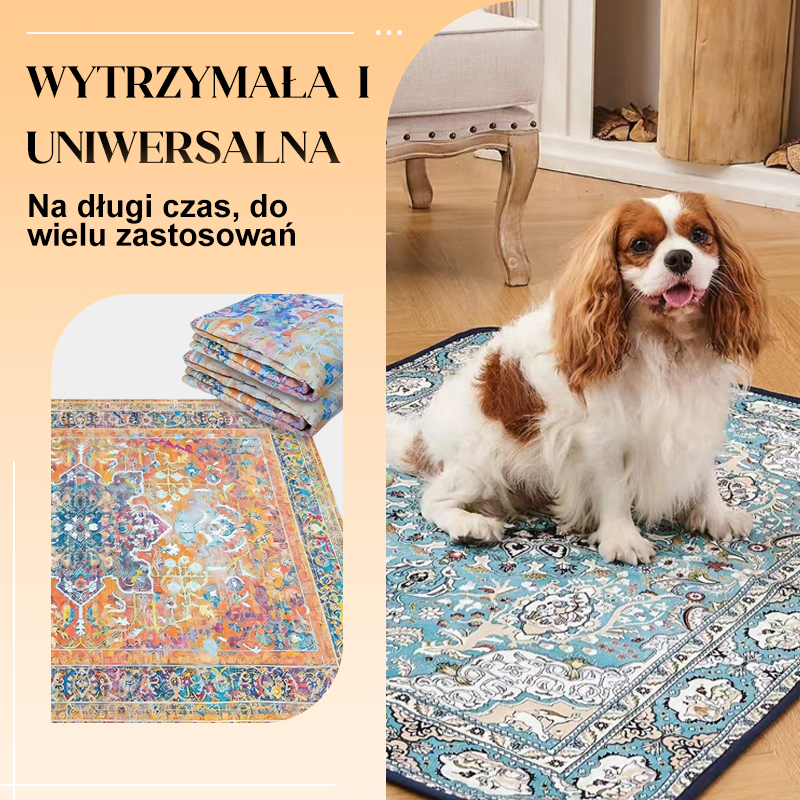 STYLOWY AKCENT W DOMU: Wzory inspirowane stylem boho dodają modnego akcentu każdemu wnętrzu, harmonijnie łącząc funkcję maty dla zwierząt z dekoracyjnym elementem.