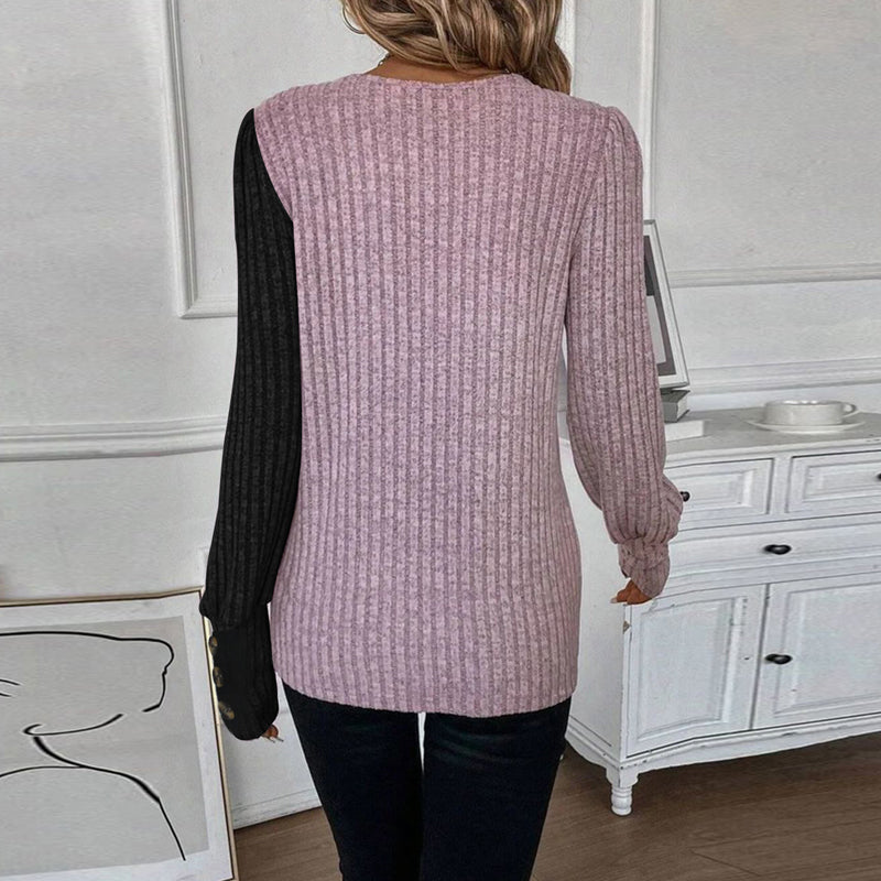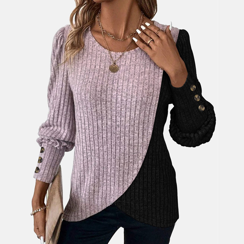👚Damska bluzka z okrągłym dekoltem w kolorze blokowym
