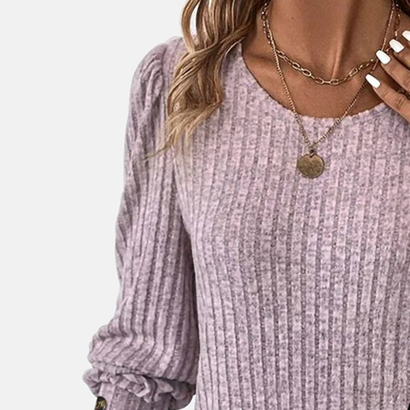 OKRĄGŁY DEKOLT Z GUZIKOWYMI AKCENTAMI: Stylowy okrągły dekolt nadaje klasyczny charakter, a ozdobne guziki na rękawach stanowią element wyróżniający. Ten przemyślany detal nie tylko poprawia estetykę, ale także zapewnia wygodę noszenia. Możesz cieszyć się eleganckim wyglądem, zachowując komfort przez cały dzień.