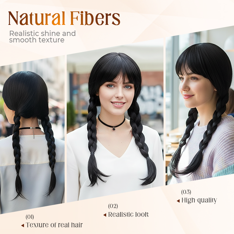 NATURALNY WYGLĄD – Wysokiej jakości włókna syntetyczne imitują połysk i teksturę prawdziwych włosów, zapewniając realistyczny wygląd w różnych warunkach oświetleniowych.