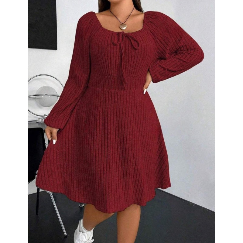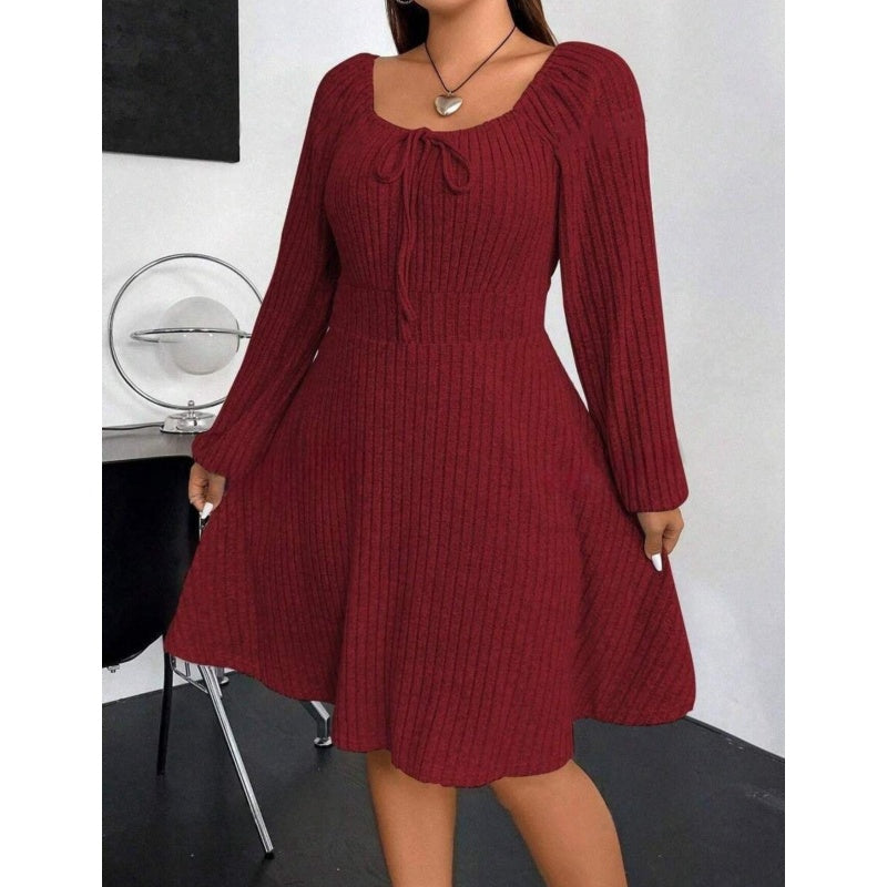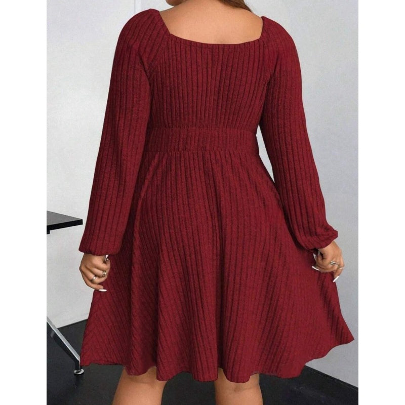 👗Sukienka z długim rękawem i kwadratowym dekoltem w kształcie litery A
