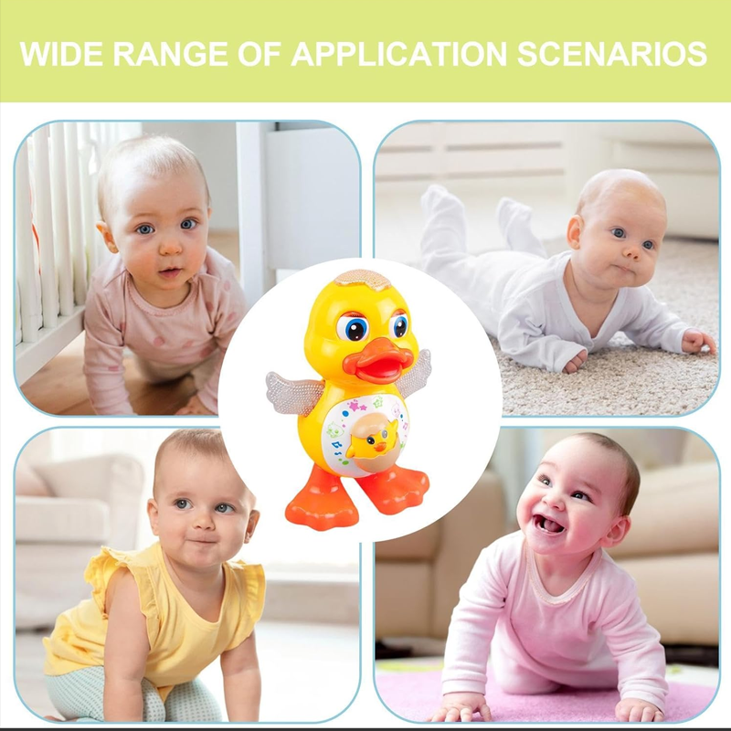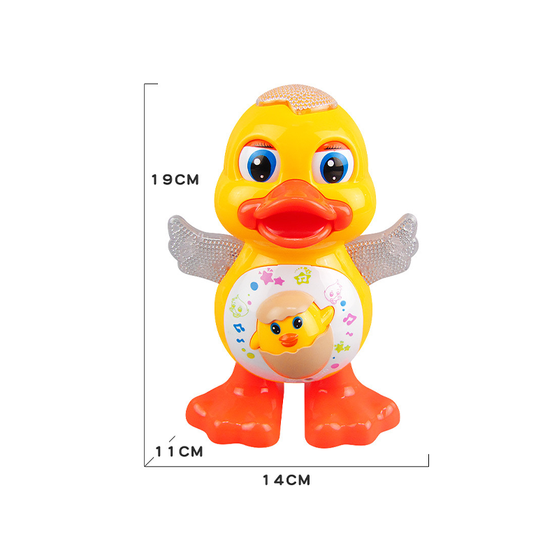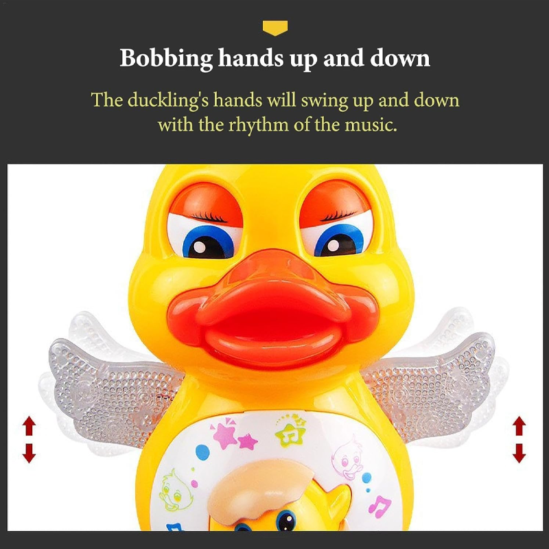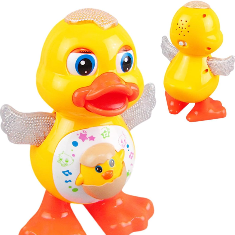 ZABAWNA AKCJA ŚPIEWANIA I TAŃCA:Obserwuj, jak kaczka tańczy, śpiewa i porusza się, przewracając oczami w górę i w dół, machając rękami i chodząc na boki, zachwycając dzieci interaktywną zabawą.
