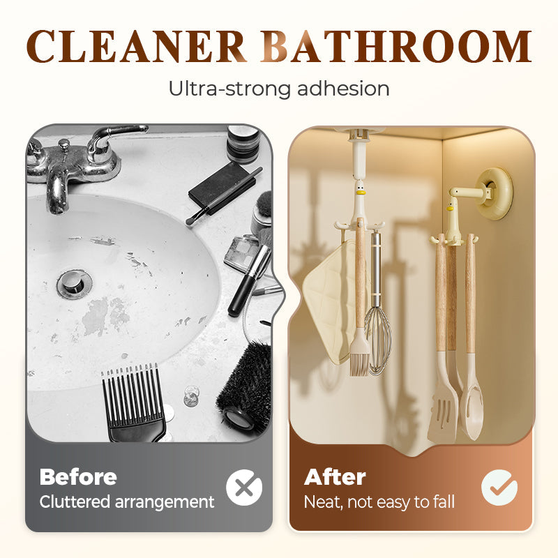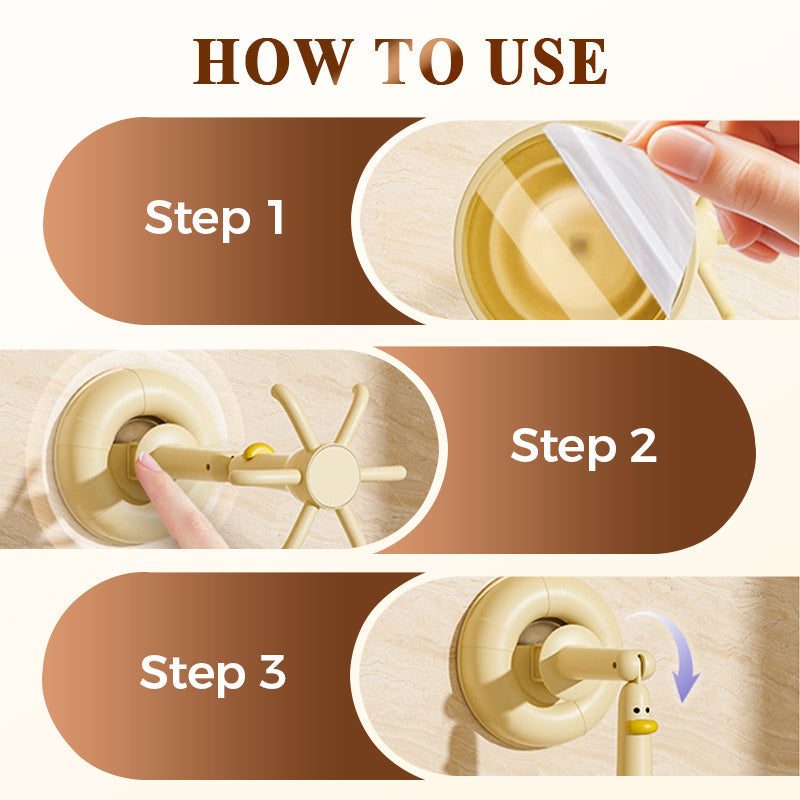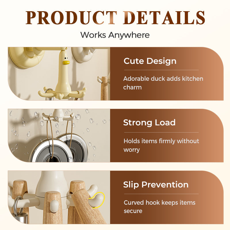 UROCZY WZÓR KACZKI:Uroczy i zabawny obrotowy haczyk w kształcie kaczki dodaje uroku i radości każdej kuchni, łazience lub przedpokojowi, pozwalając na schludne wyeksponowanie codziennych niezbędnych przedmiotów, a jednocześnie wzbogacając wystrój domu.