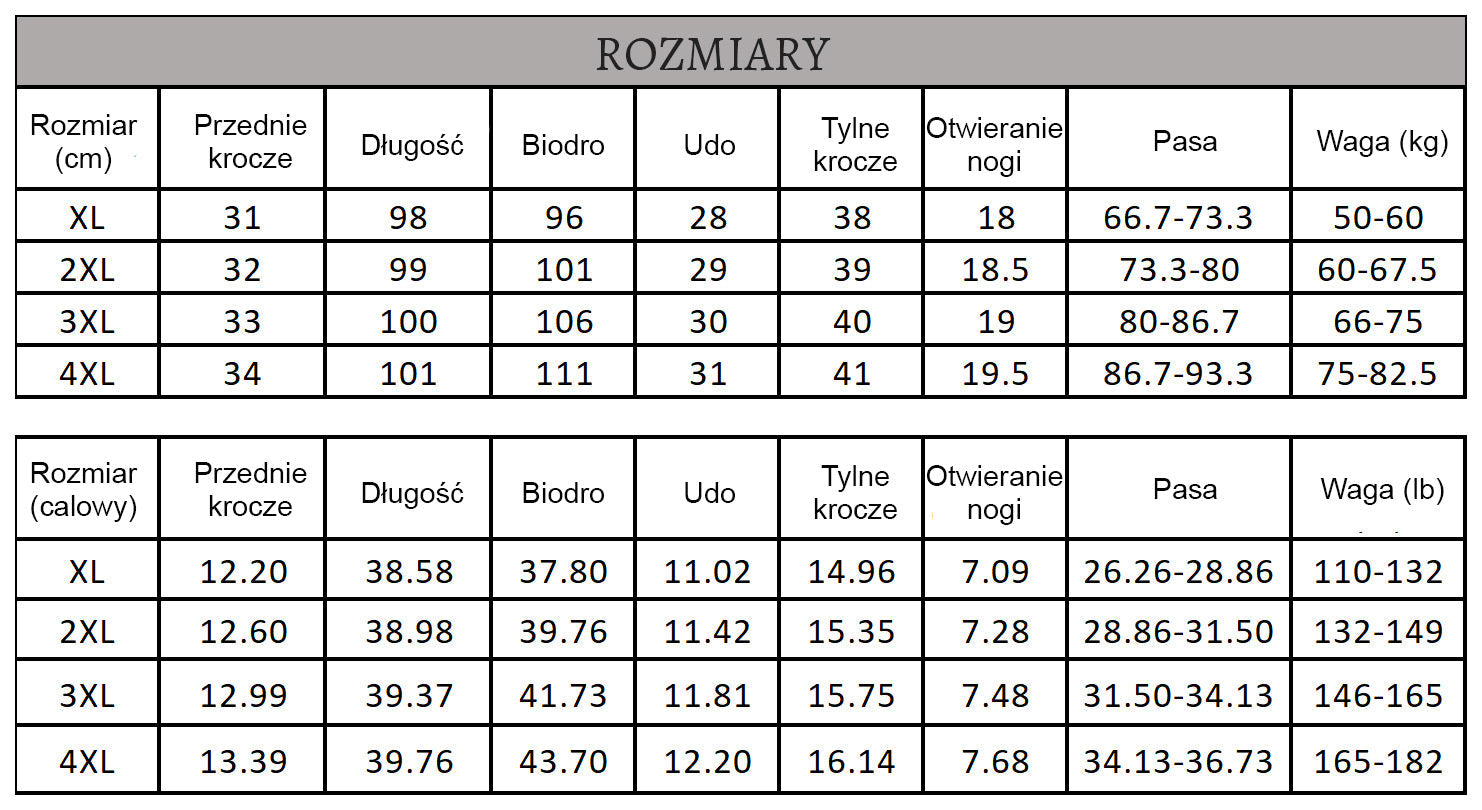 Rozmiar: XL, 2XL, 3XL, 4XL