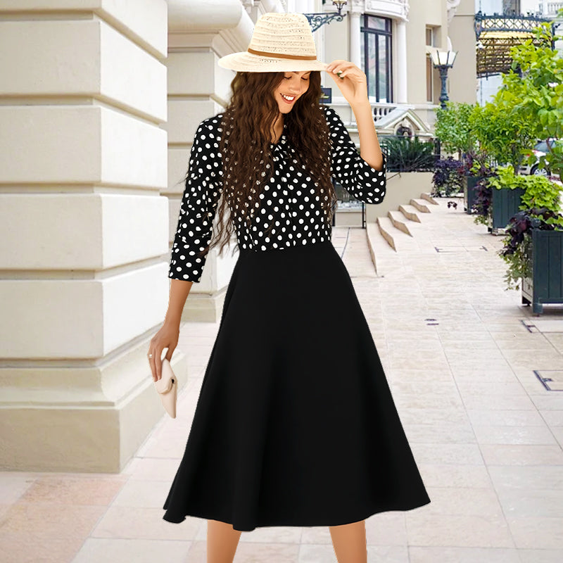 Zestaw zawiera: 1×elegancką sukienkę midi w kropki dla kobiet