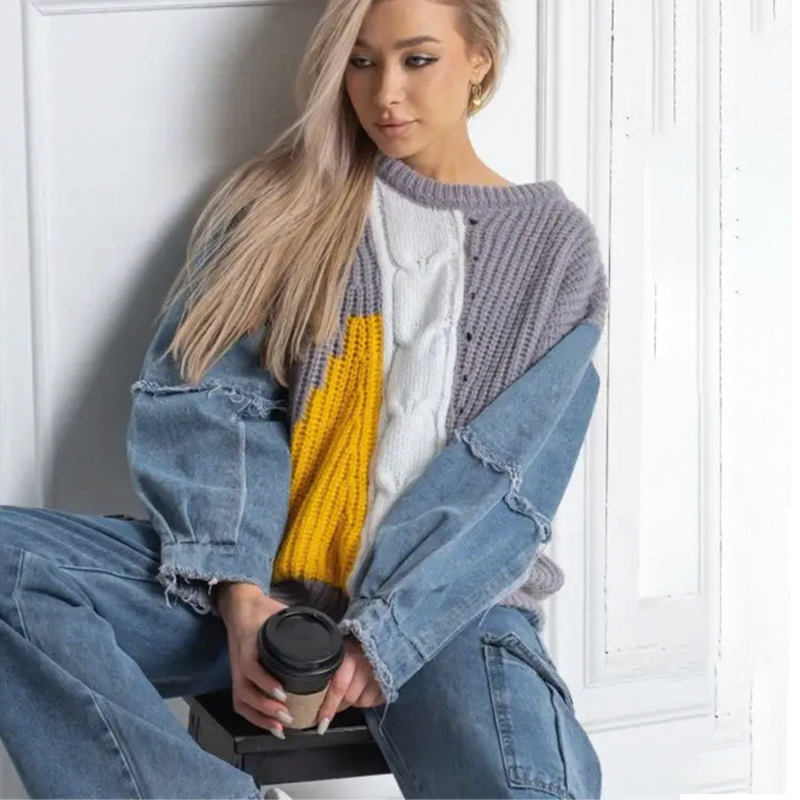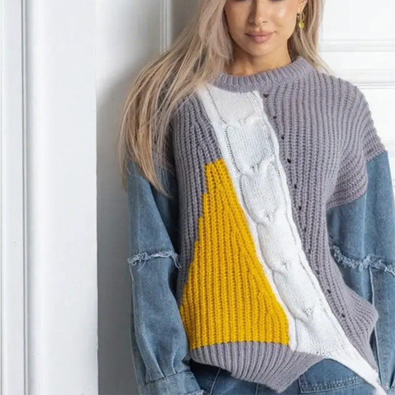 Zestaw zawiera: 1* damski sweter patchworkowy w stylu casualowym