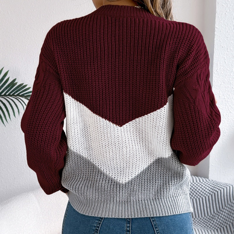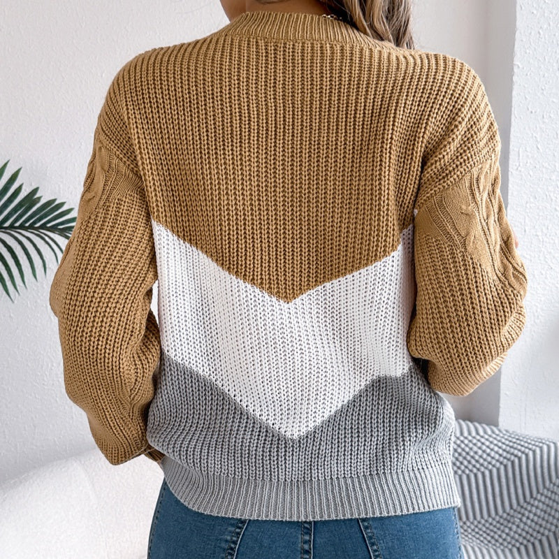 MODNY DESIGN Z BLOKAMI KOLORÓW: Ten sweter z kontrastowymi panelami w stylowych kolorach nadaje stylizacji nowoczesny, swobodny wygląd. Idealnie pasuje do dżinsów, spódnic lub legginsów, dodając energii codziennym stylizacjom i zapewniając modny, szykowny wygląd.