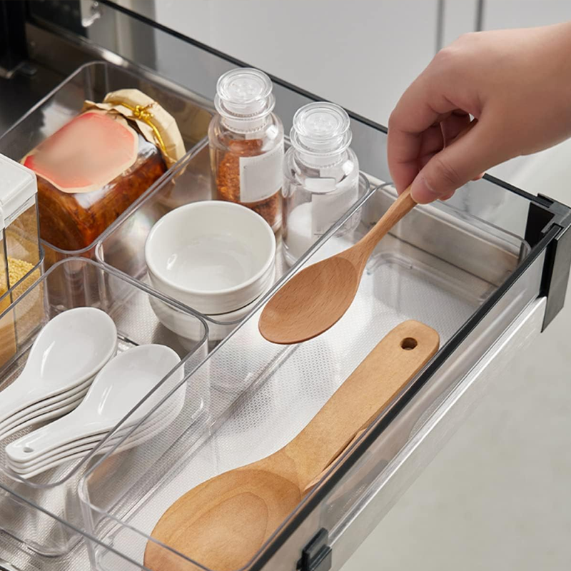 WSZECHSTRONNE ZASTOSOWANIE: To jedyne rozwiązanie do organizacji całego domu. Skutecznie sortuj przedmioty na biurku, w szufladach o dowolnej głębokości lub w całej kuchni, np. sztućce i gadżety. Jego uniwersalność sprawia, że jest to niezbędne narzędzie do każdego pomieszczenia.