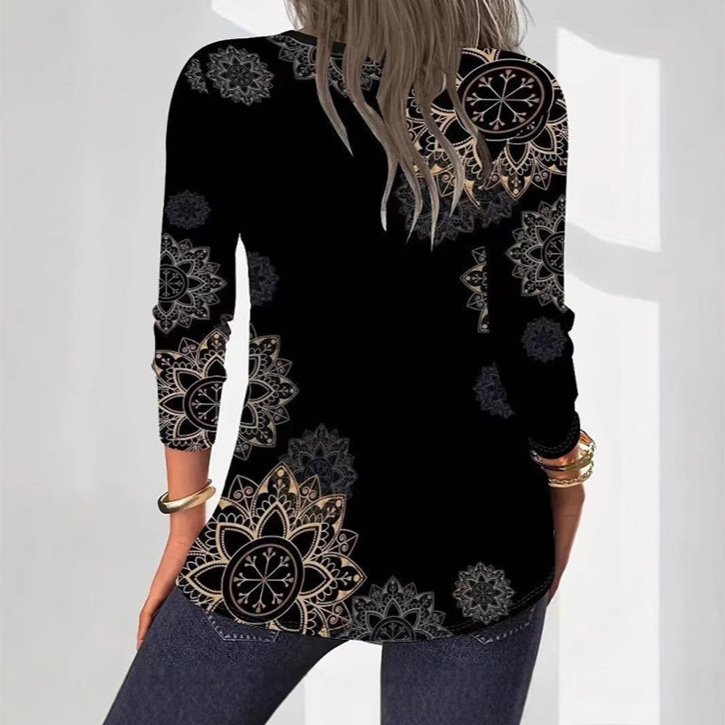 OSZAŁAMIAJĄCY WZÓR: Ta bluzka charakteryzuje się wykwintnym nadrukiem o wysokiej rozdzielczości, który nie blaknie. Wyjątkowy dekolt w kształcie litery V elegancko podkreśla sylwetkę, dodając odrobinę wyrafinowania każdej stylizacji, od casualowej po szykowną.