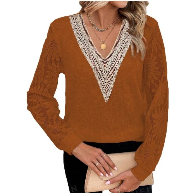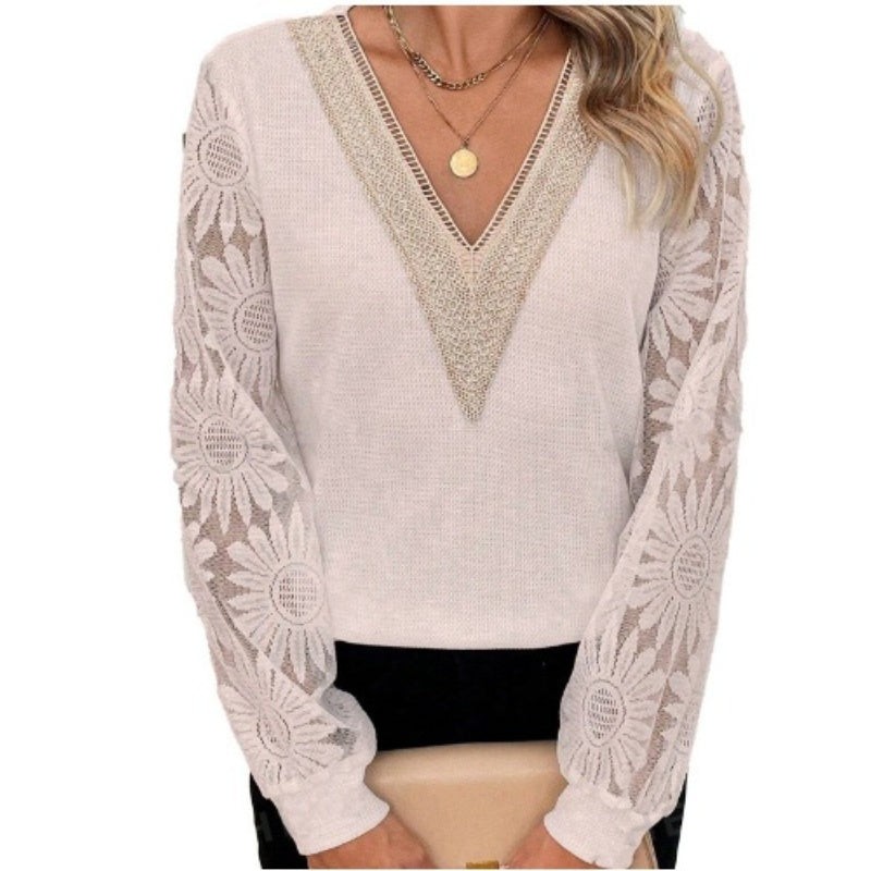 💕Elegancka bluzka z koronkowymi rękawami i dekoltem w szpic