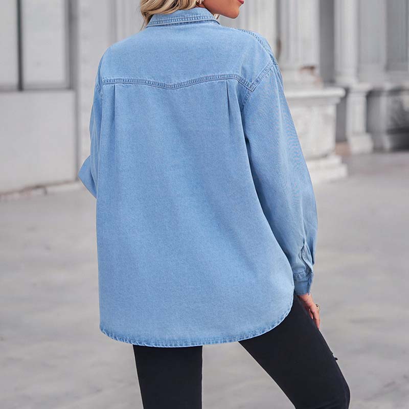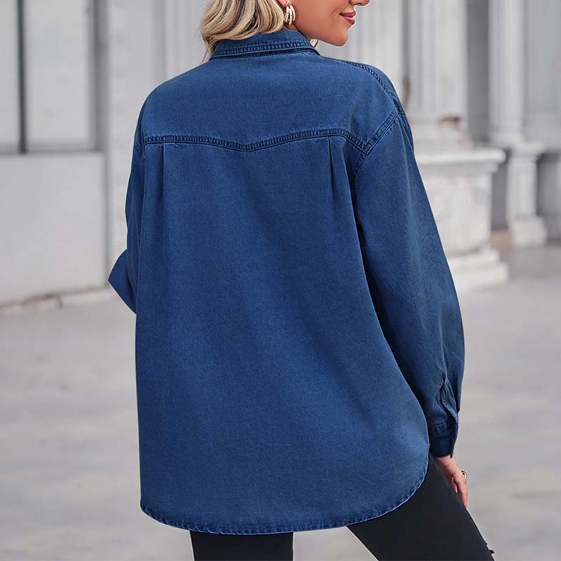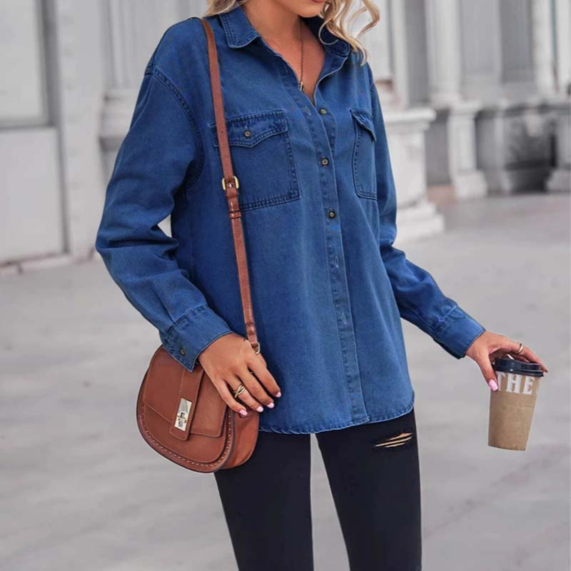 KLASYCZNY KOŁNIERZ Z KLAPAMI: Ponadczasowy kołnierz z klapami dodaje struktury i elegancji, dzięki czemu ta dżinsowa koszula nadaje się zarówno na nieformalne, jak i półformalne okazje. Połącz ją z dżinsami, spódnicą lub spodniami, aby uzyskać szykowny wygląd przez cały rok.
