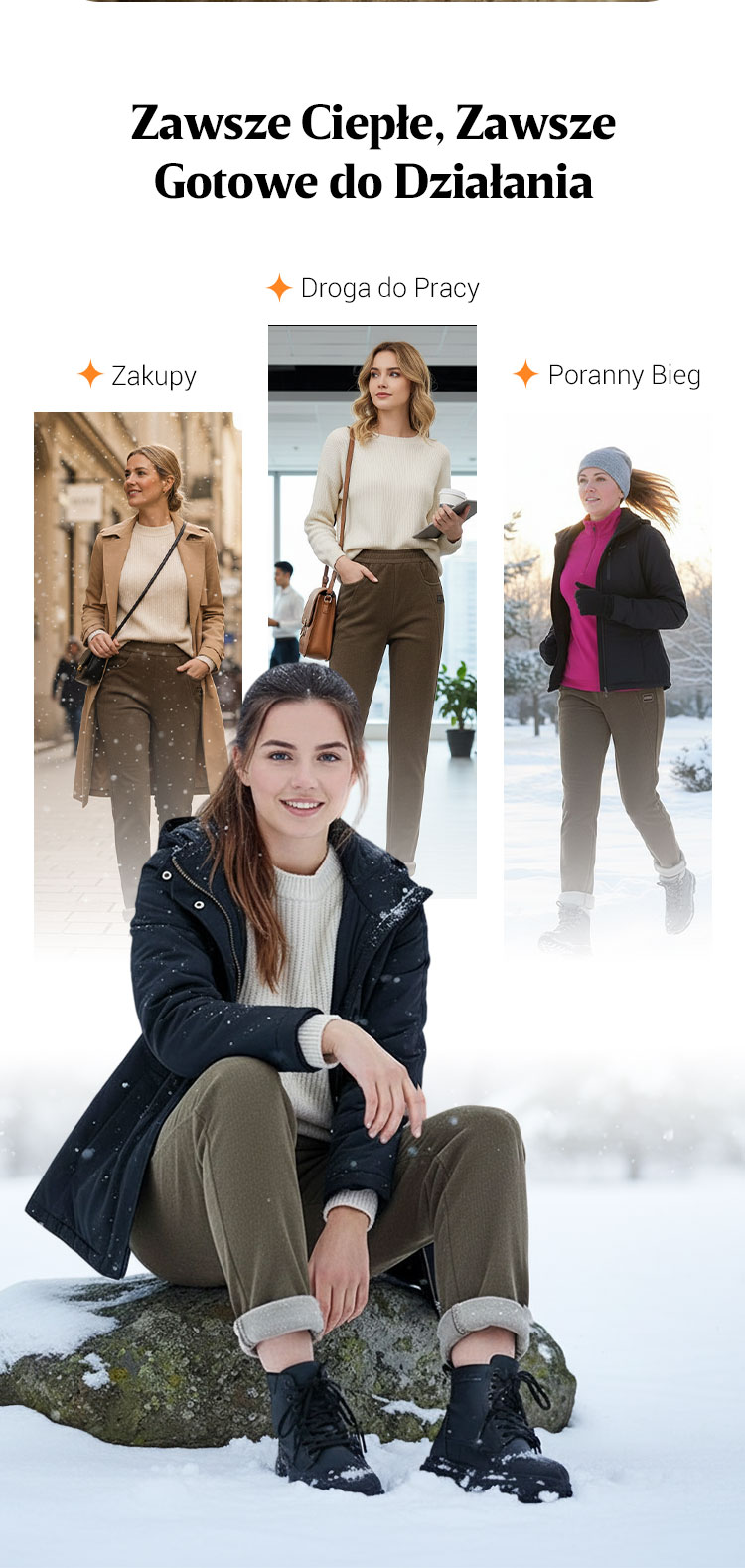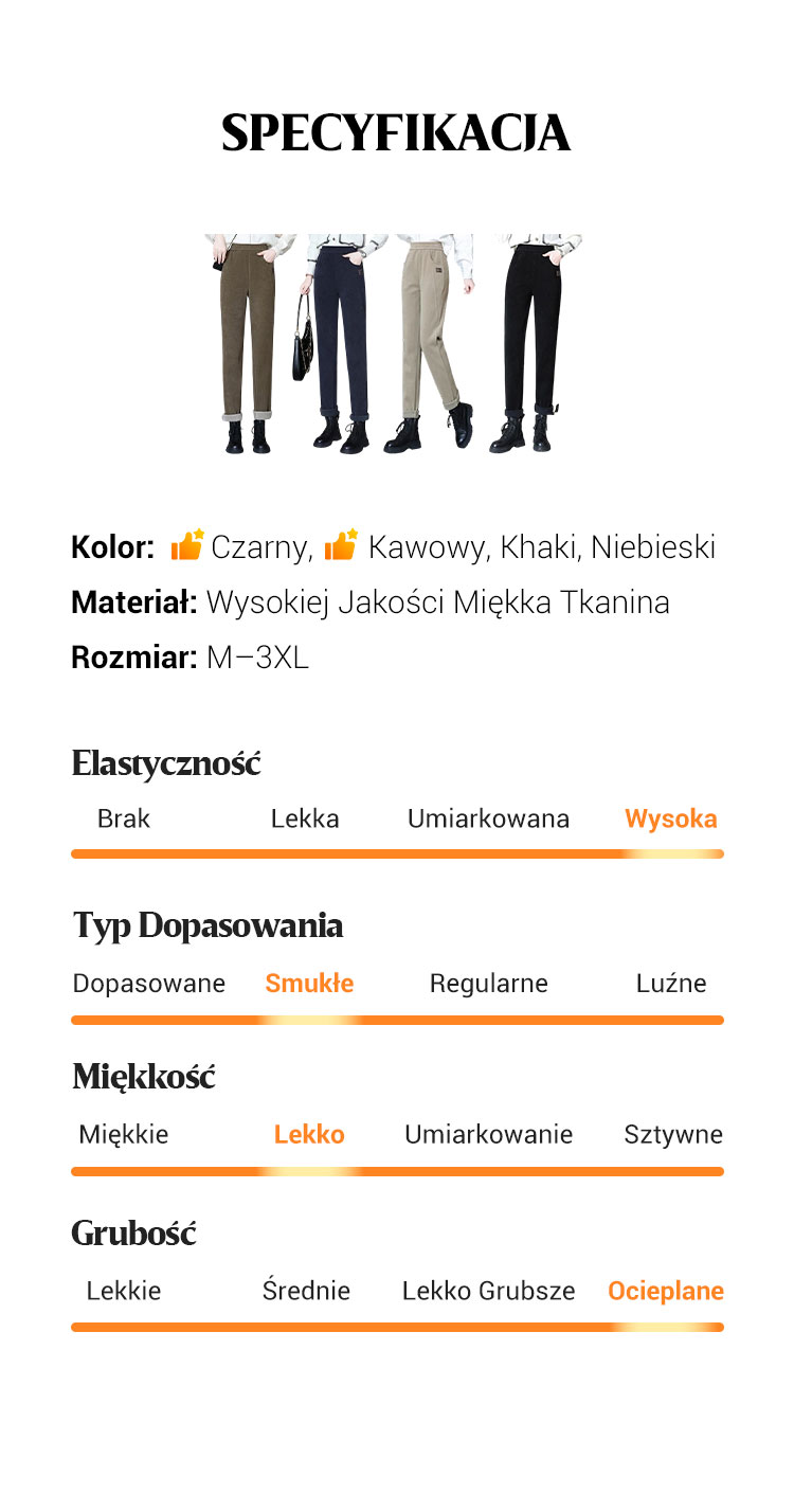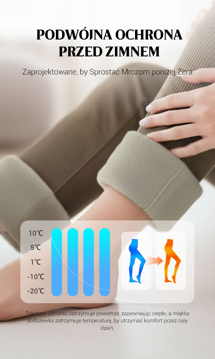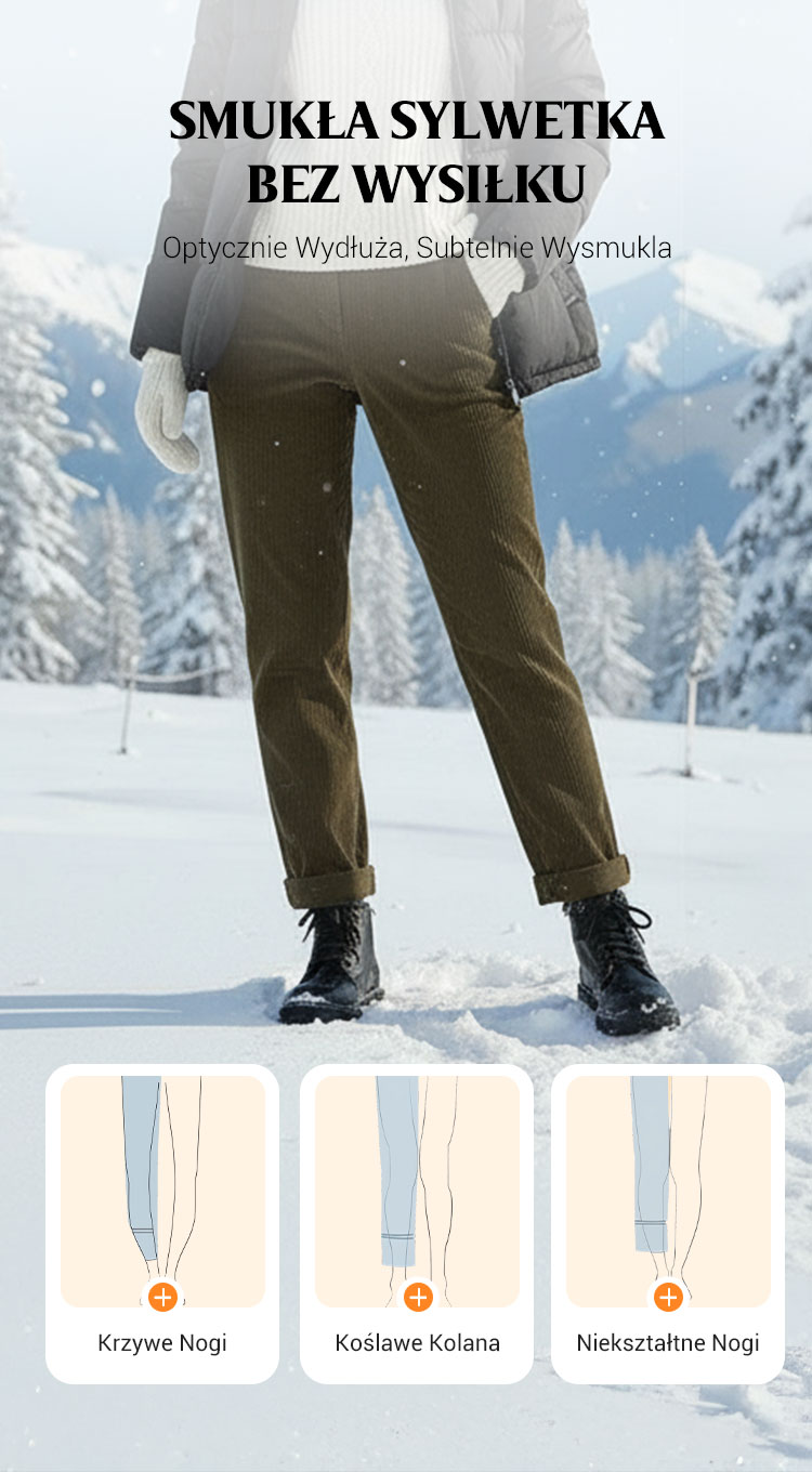 Ciepłe spodnie z wysokim stanem i wełnianą podszewką